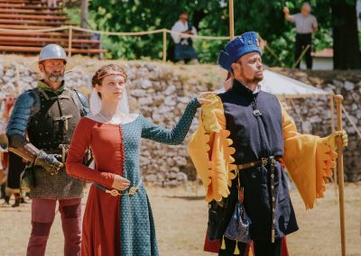 Pratnja obitelji Gorjanski predstavila se svojim kraljevskim ispravama i grbovima. Gospodin barun sudjelovao je u turniru u streličarstvu i osvojio drugo mjesto. Njegova hrabra straža natjecala se u borbama dugim mačem te u borbama mačem i štitom. Gospodin palatin, njegova kći i pratnja sudjelovali su i u natjecanju riječnim čamcima.